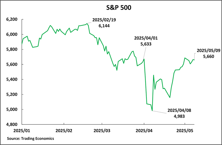 These were significant decreases, but they were smaller than the declines in 2007-2009, 2020, and 2022. That is, there was no sign that U.S. share markets were out of control, and anything outside of a normal range of periodic fluctuations occurred. By May 9, the last trading day before the announcement of the U.S.–China 90-day trade agreement, the S&P 500 was 5,660, which is above the level on April 1, that is the day before Trump made his “reciprocal tariff” announcements. On the last trading day at the time of writing, 23 May, the S&P 500 was at 5,771 – above its level on 1 April, the day before Trump’s “reciprocal tariff” announcements.