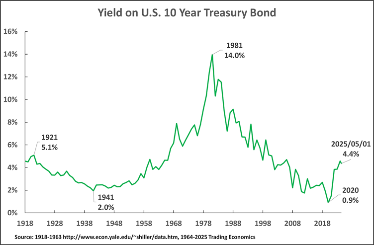 - 1921-1941, a 20-year trend of falling Treasury bond yields – with a drop from 5.1% in 1921 to 2.0% in 1941.