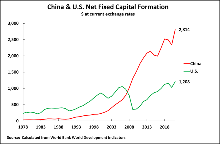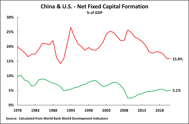 China and the U.S.’s level of net fixed capital formation